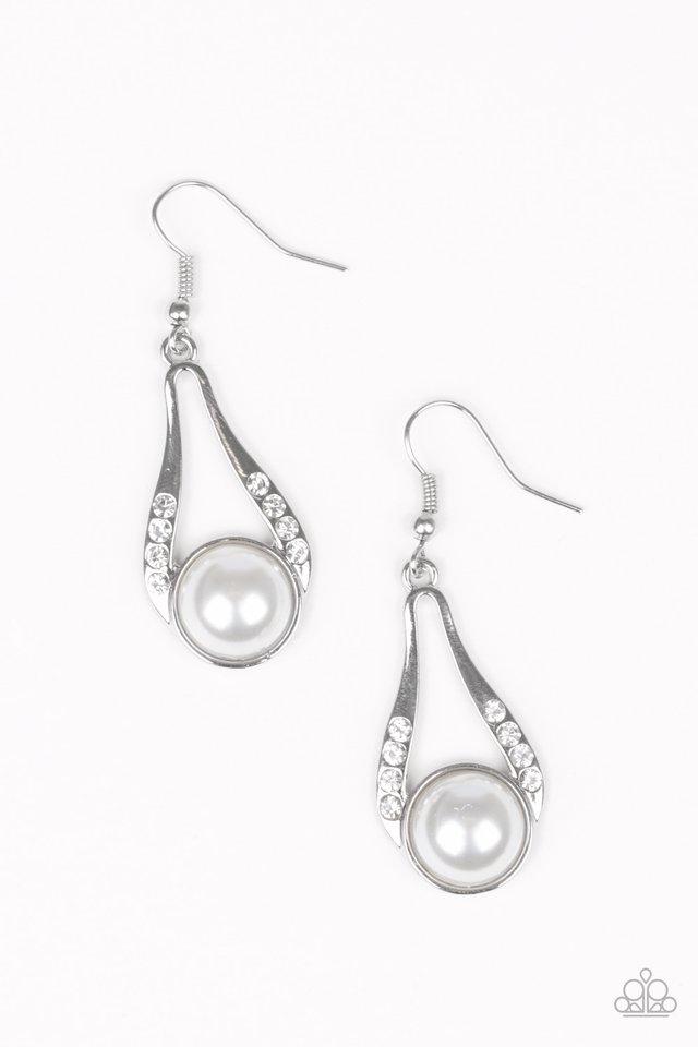 Paparazzi Earring ~ HEADLINER Over Heels - White