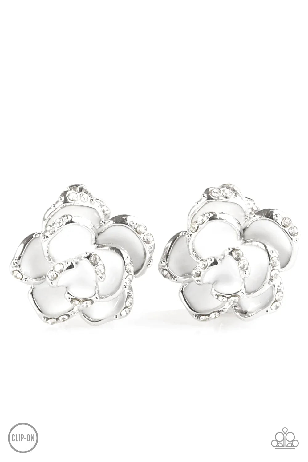 Paparazzi Earring ~ Rosebud Social - White Clip-On
