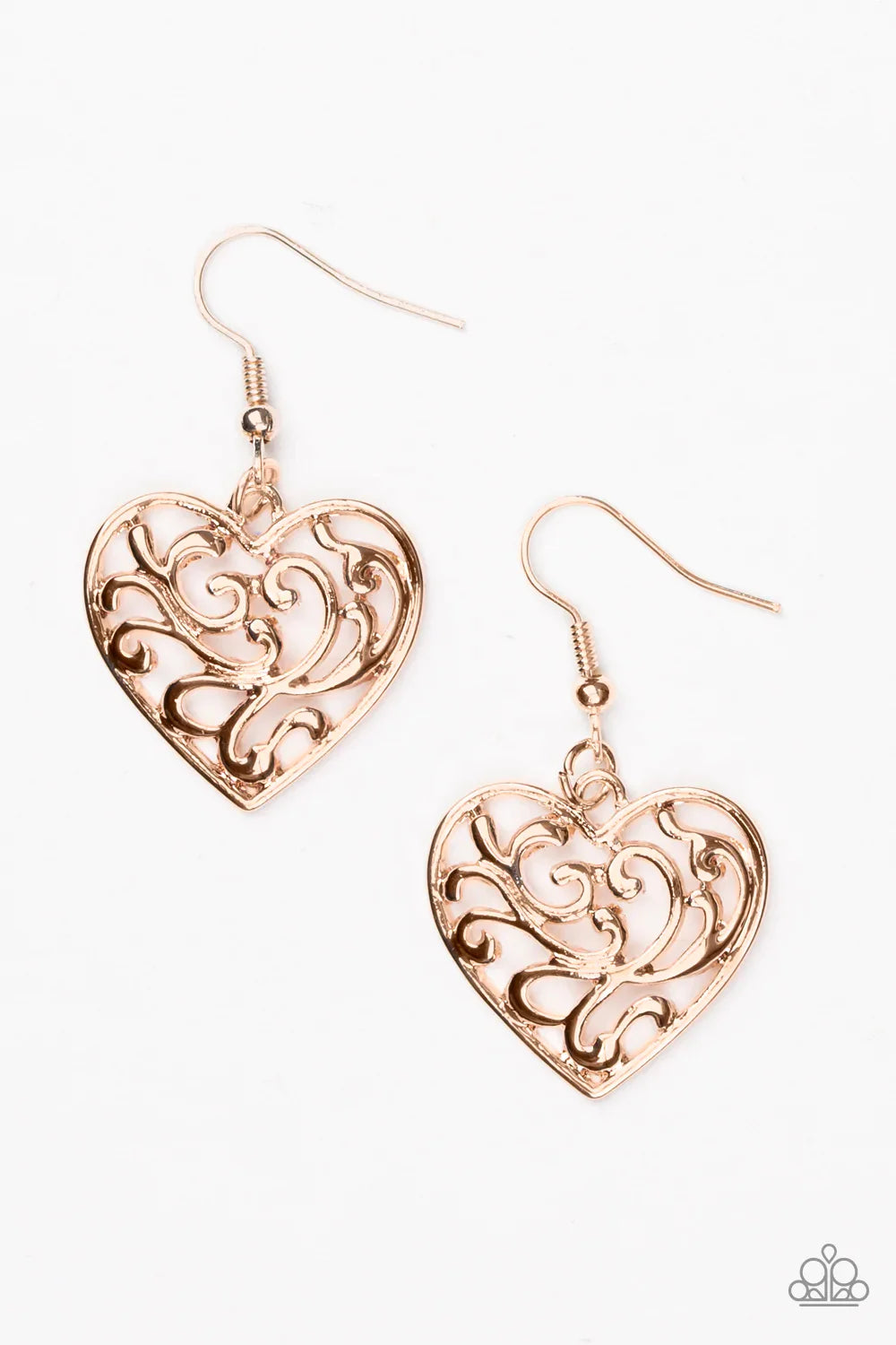 Paparazzi Earring ~ The Truth HEARTS - Rose Gold