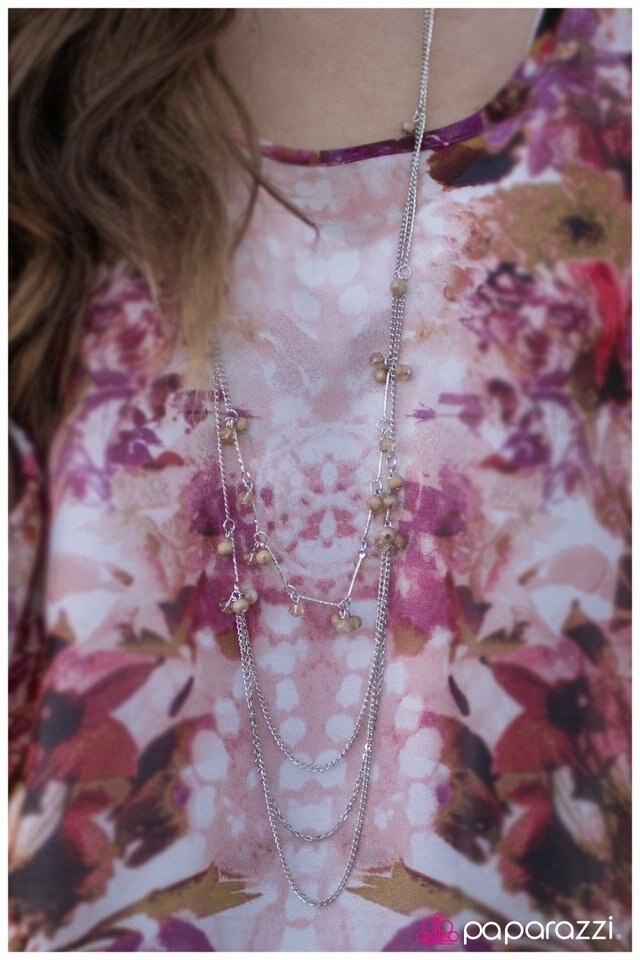 Introducing the Paparazzi Necklace - Air of Sophistication - Brown, a stunning piece that exudes elegance and charm. This necklace features an array of dainty beading in marbled, crystal-like, and sparkling faceted surfaces, all delicately dangling from two shimmering silver chains. The soothing shade of Iced Coffee beautifully complements the luminescent beads, creating a visual feast for the eyes. Skinny silver bars alternate with the beads along the uppermost chain, adding a touch of sophistication. As for the three additional cascading chains below, they create a whimsical and layered look that is truly captivating.