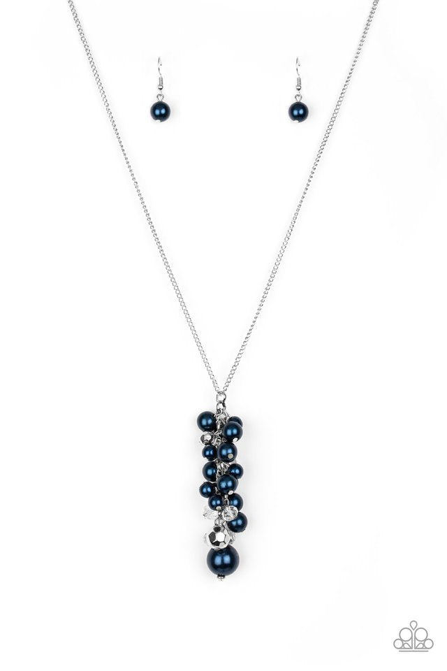Introducing the captivating Paparazzi Necklace - Ballroom Belle - Blue! This stunning piece features a beautiful display of mismatched blue pearls, white crystal-like beads, and faceted silver beads that cascade from an elongated silver chain, forming an elegant clustered tassel. The adjustable clasp closure allows for a perfect fit, while the included matching earrings tie the look together effortlessly. Elevate your style with this exquisite necklace that exudes sophistication and charm.