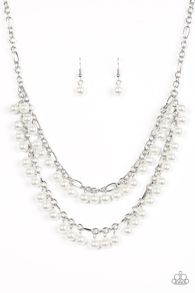 This stunning piece is a must-have for any jewelry collection, adding a touch of sophistication to any ensemble. Make a statement with the Paparazzi Necklace - Beauty Shop Fashion - White and exude confidence and style with every wear. Embrace the timeless beauty of pearls and the versatility of silver links in this breathtaking set. Elevate your look with this exquisite jewelry set and showcase your impeccable taste.