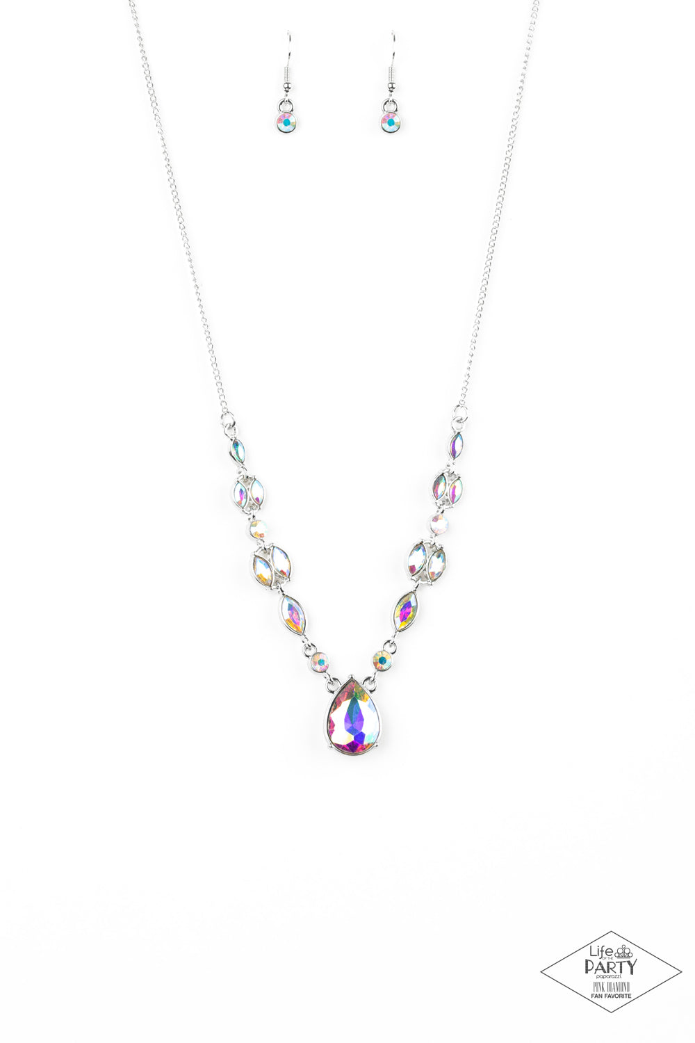 Adorn yourself with the luxurious Royal Rendezvous - Multi necklace, featuring regal marquise style cuts and glittery iridescent rhinestones that trickle along a shimmery silver chain below the collar. The dramatic teardrop rhinestone pendant creates a breathtaking centerpiece, and with the adjustable clasp closure, you can customize the fit to your preference.