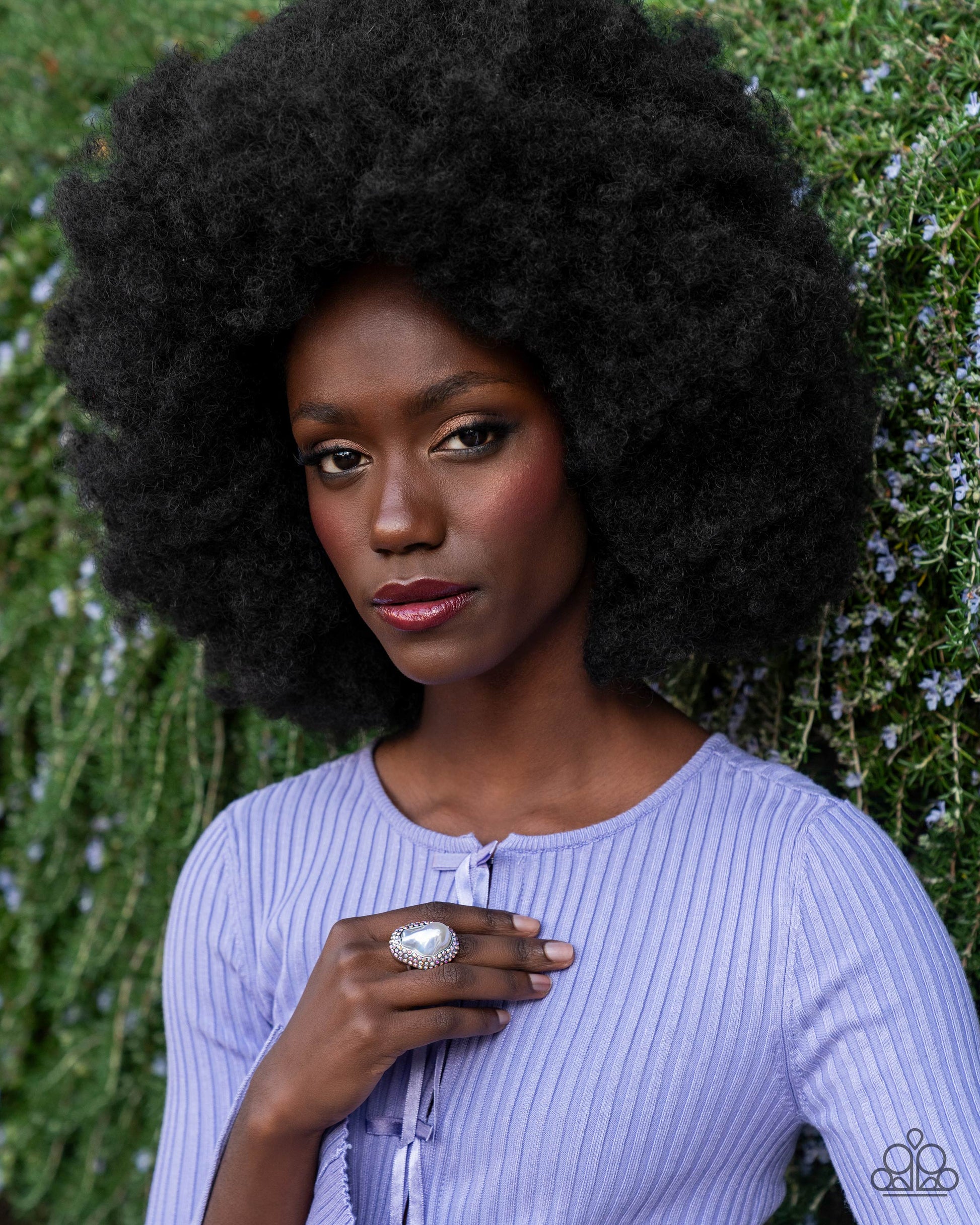 Elevate your style for a memorable girls night out with a charming ocean-themed ring showcasing a dazzling glossy baroque white pearl, perfectly embraced by a radiant abstract silver frame adorned with captivating iridescent details. Its flexible band guarantees a snug and enjoyable fit for anyone. Each ring features a distinctive prismatic color scheme, ensuring a delightful variation that adds a magical element to your accessory collection.